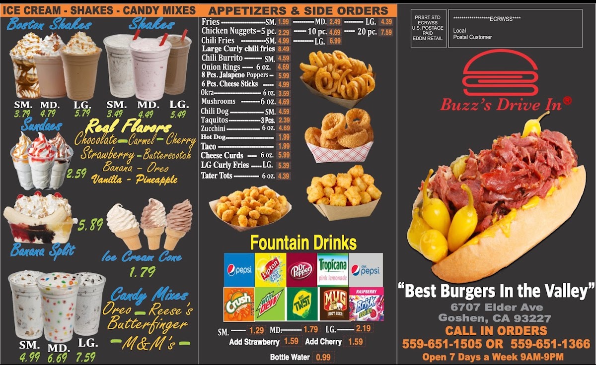 Buzz's Drive In Menu